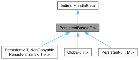An object reference that is independent of any handle scope. Where a Local handle only lives as long as the HandleScope in which it was allocated, a PersistentBase handle remains valid until it is explicitly disposed using Reset().