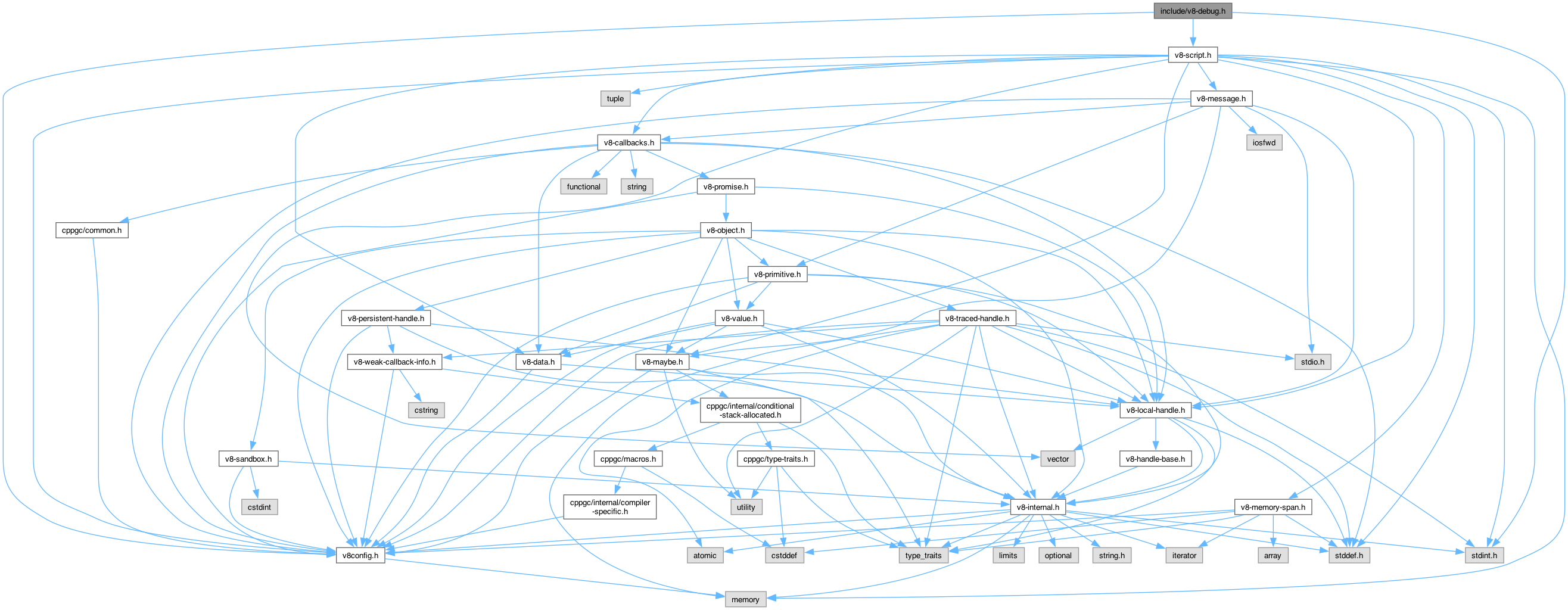 Include dependency graph for v8-debug.h: