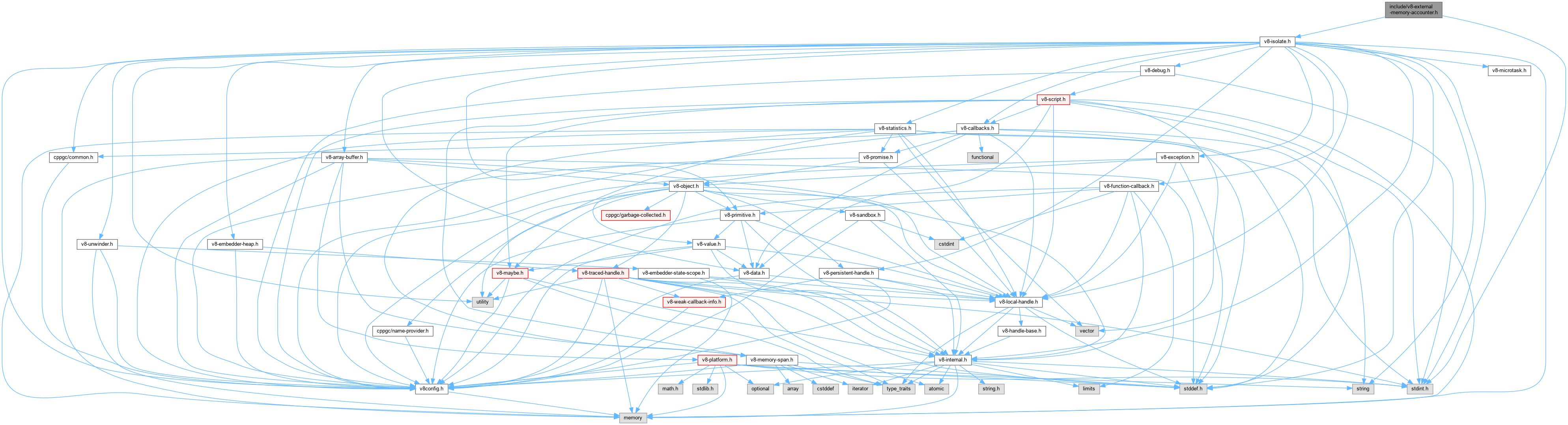 Include dependency graph for v8-external-memory-accounter.h: